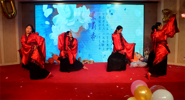 公司各部門各展其能,晚會節目有歌唱、脫口秀、小品、舞蹈、三句半等,節目形式多樣,豐富多彩,s先,國內銷售帶來舞蹈《開門紅》拉開了序幕,帶來了濃濃的新年韻味,引起觀眾一陣陣歡呼;