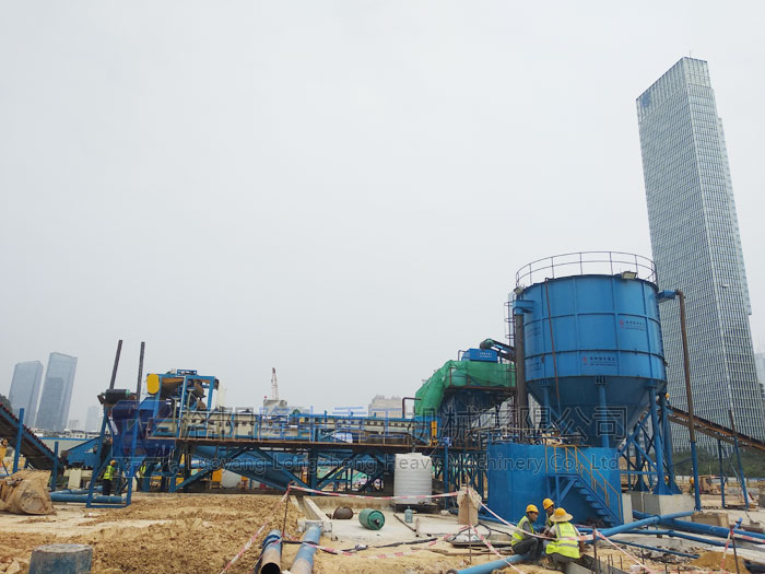 在經過現場勘查和測量后,我們工程師根據現場規劃,為其配用了建筑泥漿處理零排放系統的新型技術,整個生產過程沒有排放,砂、泥、水都實現了資源化利用。