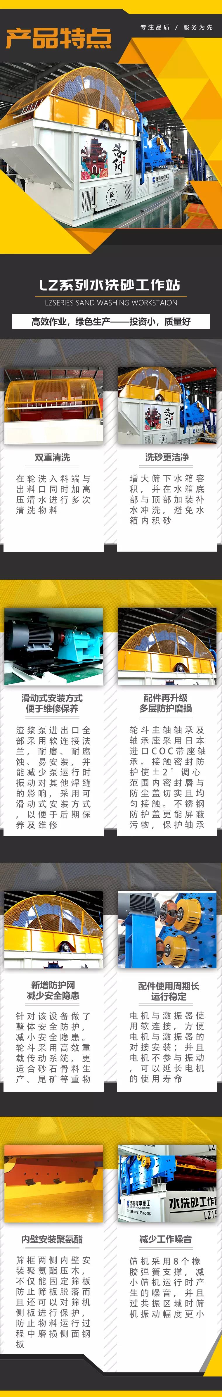 該一體機擁有良好的焊接工藝,同時一臺設備即可完成洗砂、回收、脫水等細砂工藝,質量可靠,使用壽命長,投資成本低,經濟效益好。
