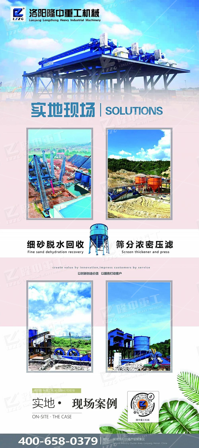 隆中重工是一家擁有10余年市場經驗的礦山設備研發制造商,產品系列包含篩分設備、水洗設備、濃密設備、壓濾設備等,以環 保洗砂、污水處理零排放為核心業務,以可靠的品質與優良的服務獲得了用戶的一致好評。