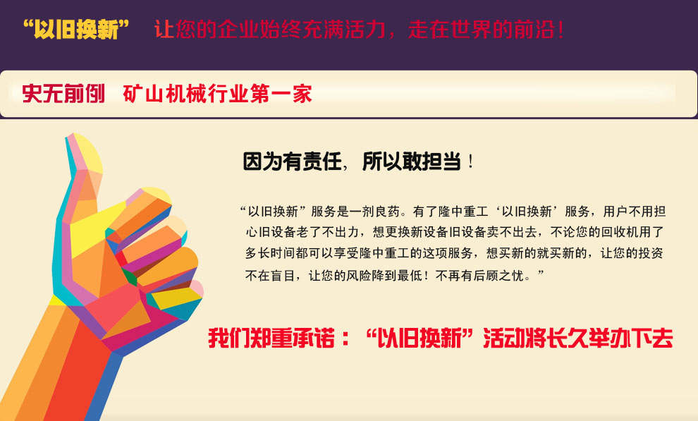 10、保证以旧换新的设备是隆中重工正品全新先进设备。