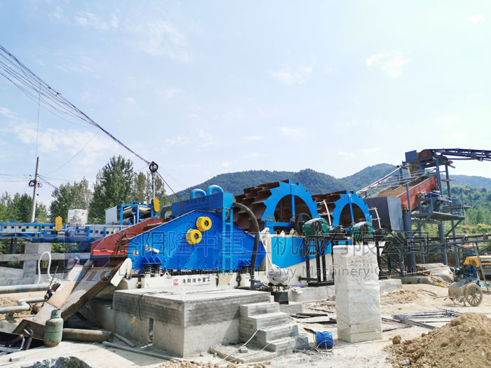 石料清洗現場,主要清洗設備選用的就是輪斗洗沙機