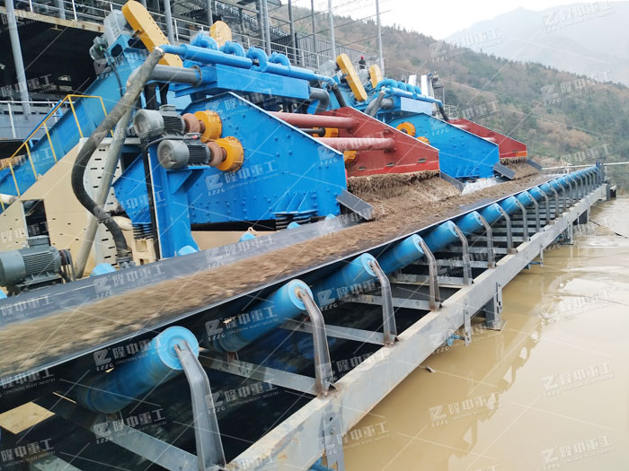 如果您是開采河沙或者只進行洗砂作業的話,全套環 保型水洗生產線設備為洗砂機(輪式或螺旋式)、振動給料機、料倉、輸送機、細沙回收機、霧炮噴淋設備,沉淀池屬于安裝修建一類。不過具體的設備配置還是要依據用戶需求而定。
