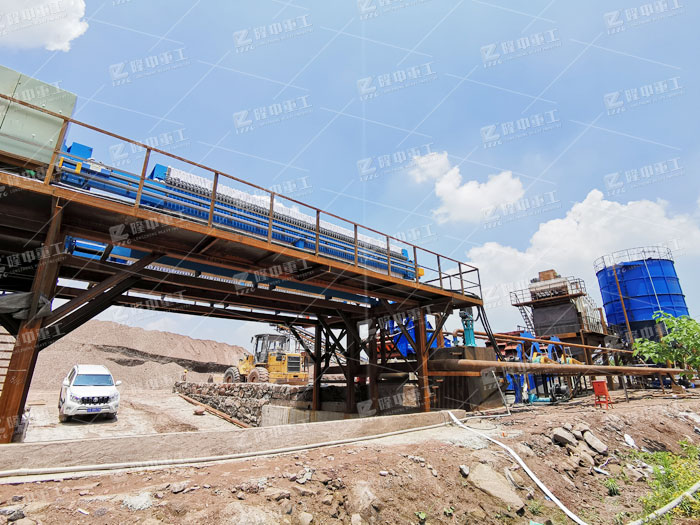 **,砂子污水處理設(shè)備在工作運(yùn)行中,懸浮液先從止推板上的進(jìn)料孔進(jìn)入各濾室,然后壓緊裝置推動(dòng)壓緊板,將所有濾板和濾框壓緊在機(jī)架中,達(dá)到額定壓緊力后,即可進(jìn)行過(guò)濾。固體顆粒被過(guò)濾介質(zhì)截留在濾室內(nèi),濾液則透過(guò)介質(zhì),由出液孔排出機(jī)外。同時(shí)由于砂子污水處理設(shè)備的研發(fā)是在傳統(tǒng)壓濾機(jī)的技術(shù)基礎(chǔ)上,吸收了國(guó)內(nèi)外同類(lèi)產(chǎn)品先進(jìn)技術(shù)設(shè)計(jì)而成,所以設(shè)備具有十分優(yōu)良的分離效果。