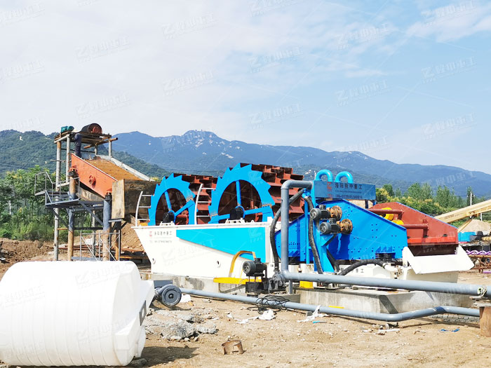 4、水洗沙設備:由于山砂的硬度不高,一般選擇隆中水洗沙機、螺旋水洗沙機、輪式水洗沙機、移動水洗沙機等對其進行水洗沙處理,砂石骨料的清洗和提純,通過葉輪式洗砂原理洗砂,可大大提升成品品味。生產線中可配置一臺或多臺水洗沙機。