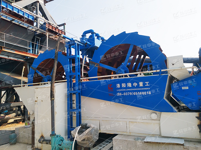 給大家介紹水洗這一環節,給大家推薦使用輪斗式洗砂機,它又被稱為葉輪式洗砂機,制出的砂通過槽式給料機進入洗槽中,在葉輪的帶動下翻滾,并互相研磨,除去覆蓋砂石表面的雜質,同時破壞包覆砂粒的水汽層,方便脫水;同時加水,形成強大水流,及時將雜質及比重小的異物帶走,并從溢出口洗槽排出,完成清洗作用。