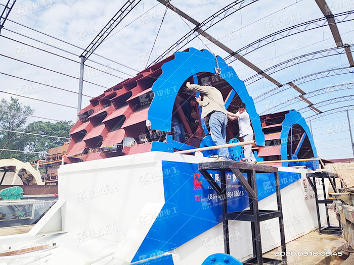 物料經破碎制砂后,我們可在制砂機的下段布置輪式洗砂機設備,輪式洗砂機設備可對機制砂中過量的石粉、泥土和雜質進行清洗,具有清洗效果好、中細粉流失少、用水量小的特點。