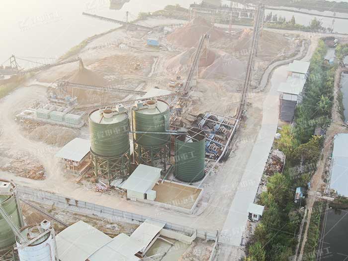 濕法生產工藝的優點是:粉塵污染少,水洗篩分效率高。缺點是用水量大,砂石骨料的細粉回收和污水處理費用高,細砂石粉流失嚴重,成品砂脫水困難;采用立式沖擊破碎機制砂時,成砂率較低。